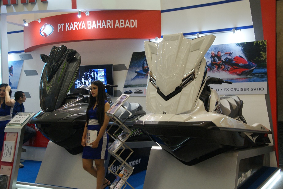 Tahun ini ada yang spesial di Booth yamaha. Tiga buah waverunner (Personal Watercraft) dan satu unit mesin F300 berdaya tiga ratus tenaga kuda terpasang di booth Yamaha. PT. Karya Bahari Abadi selaku distributor tunggal produk Yamaha Marine di Indonesia berharap dengan kehadiran nya dalam pameran ini dapat menambah serunya pameran yang diadakan setahun sekali ini.