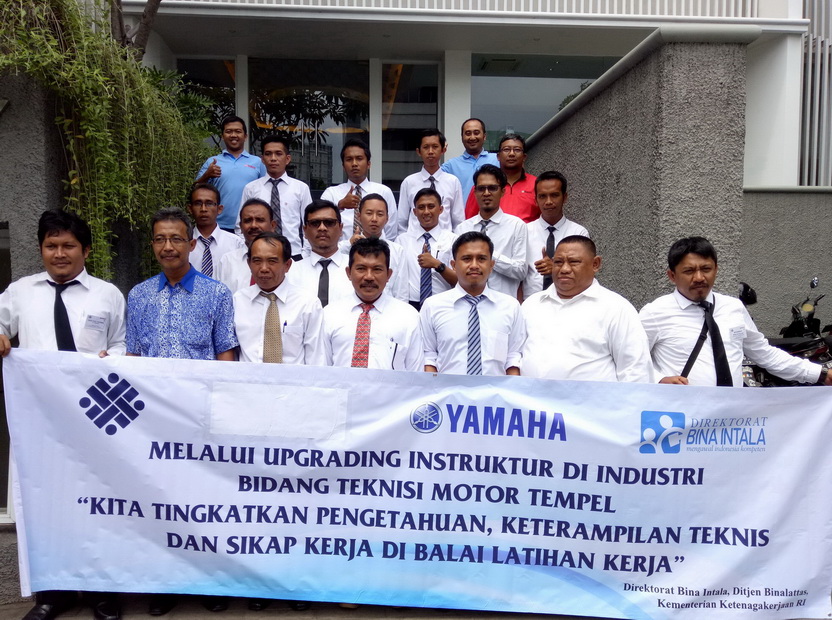 Untuk ke-2 kalinya training mekanik bersama Direktorat Bina Intala dibawah naungan Kementerian Tenaga Kerja Republik Indonesia. Pada gelarannya ke-2 ini, 16 peserta training mekanik yang terdiri dari para instruktur BLK (Balai Latihan Kerja) se-Indonesia berfokus pada pelatihan mesin outboard (motor tempel) Yamaha 2 tak. Motor tempel Yamaha yang digunakan sebagai demo untuk pelatihan kali ini adalah E15D. Salah satu tipe motor tempel yang merupakan High Thrust ini paling handal dikelasnya dan cocok untuk perahu karet, fiber dan kayu khususnya perahu nelayan.