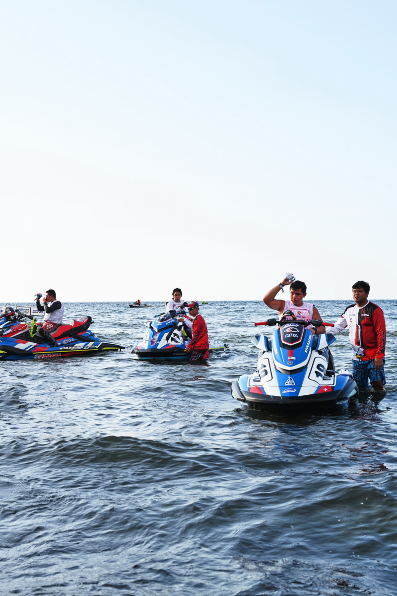 Still strengthened by 4 racers who use the Waverunner FX Cruiser SVHO and GP1800R line-up, Makaio, Kanina, Adi, and Nuttakorn, showing off their skills by winning the main position in moto 1 to moto 4. The fatigue that radiated from their faces paid off with their external performance. common in the seas of North Bali.